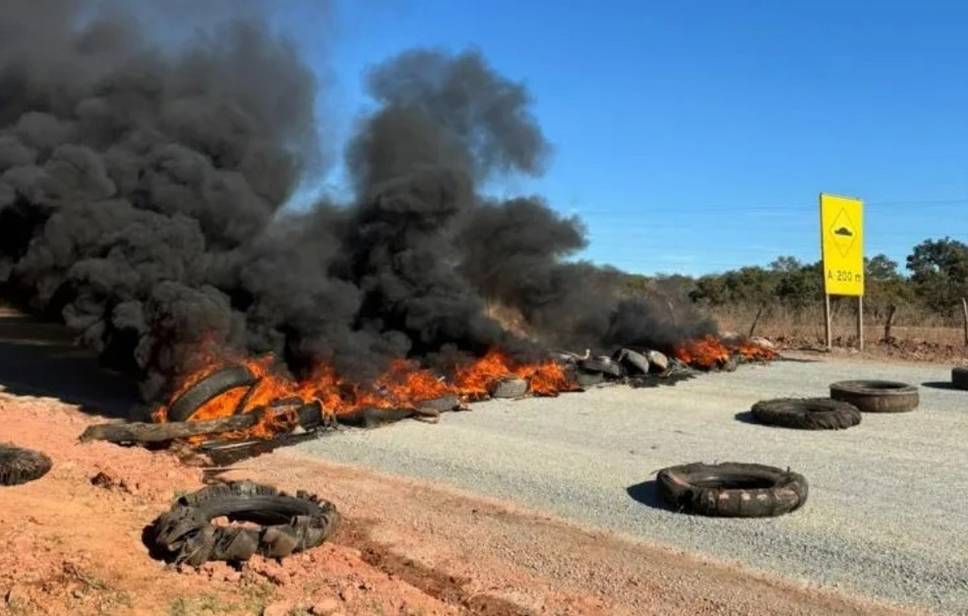 Entrada da cidade foi fechada com pneus queimados; comerciantes alegam prejuízos por causa da obraMoradores e comerciantes do município de Monte Alegre realizam um protesto na manhã desta terça-feira (21/05) contra uma obra do Departamento Nacional de Infraestrutura de Transportes (DNIT) na BR-135 e fecharam a entrada da cidade queimando pneus. Segundo informações do Portal B1, os comerciantes alegam que a obra está causando muita poeira e que isso tem gerado prejuízos a eles.