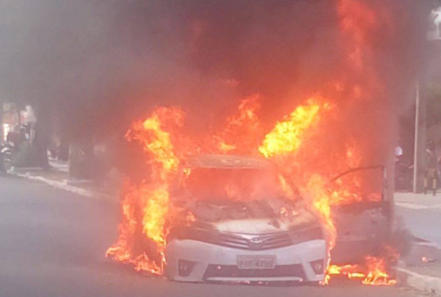Ainda não há informações sobre o que causou o incêndioUm carro modelo Toyota Corolla ficou completamente destruído após pegar fogo no início da tarde desta segunda (07/08) na avenida Joaquim Nelson, no bairro Dirceu, zona Sudeste de Teresina.