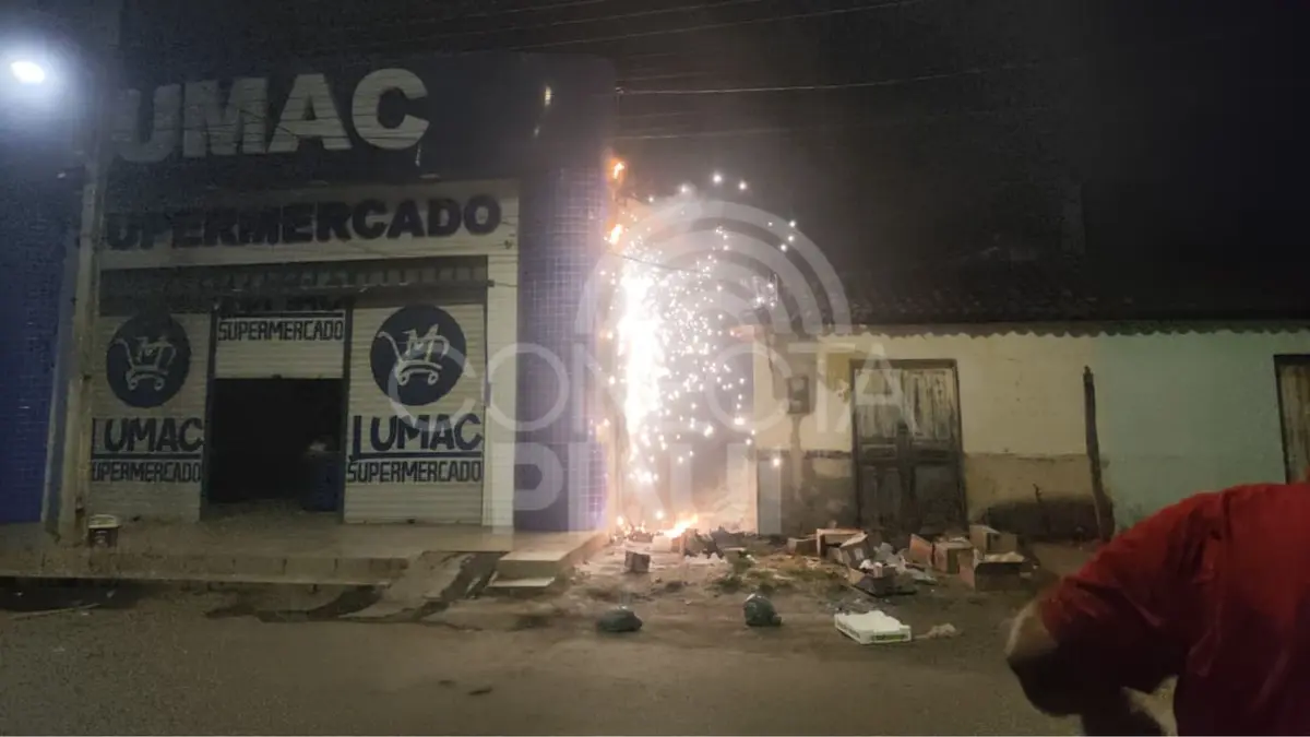 Curto-circuito causa incêndio próximo a supermercado e assusta moradores no Piauí
