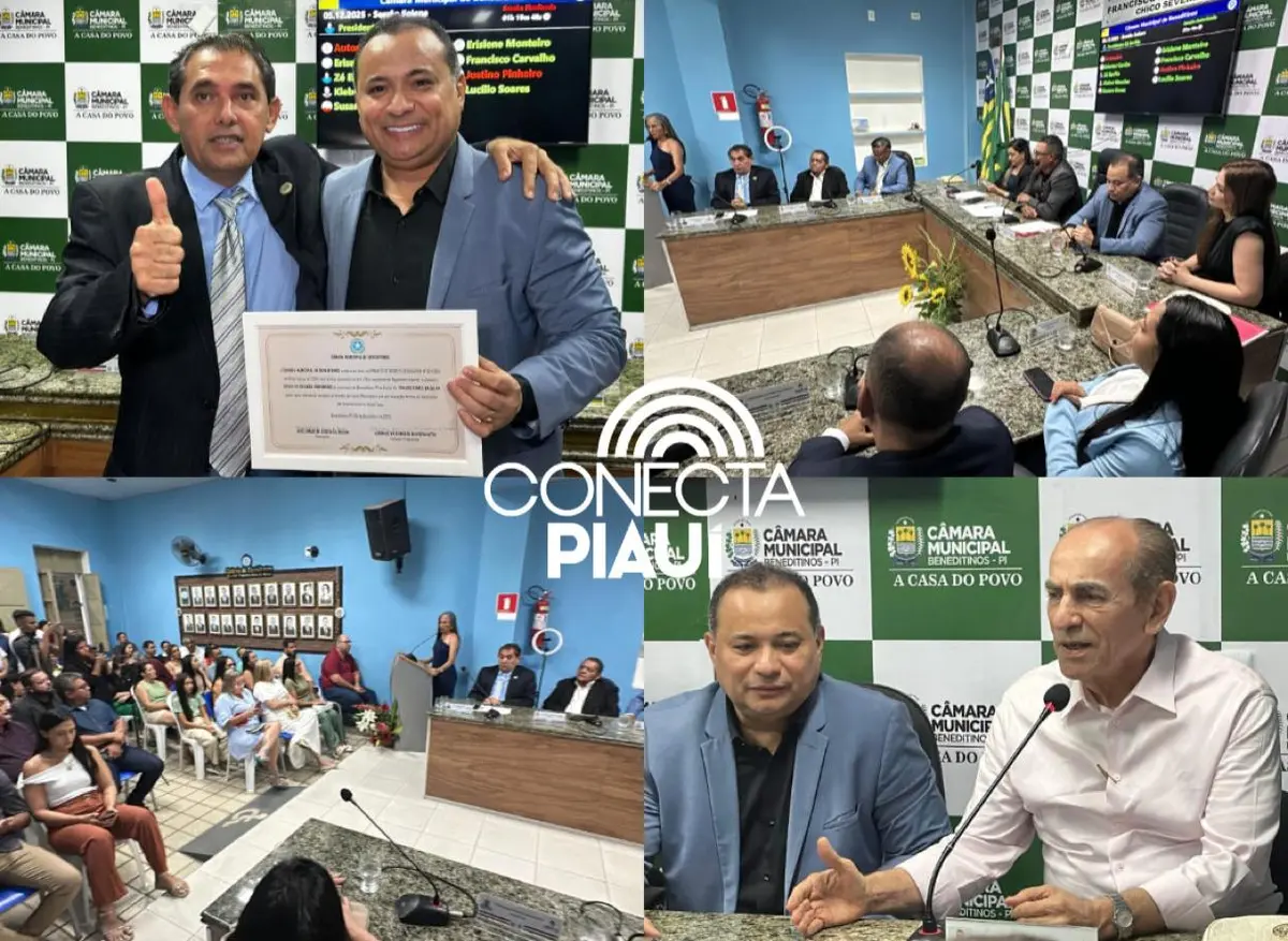 O deputado estadual Evaldo Gomes recebeu, na noite desta sexta-feira (05/12), o título de cidadão beneditinense em solenidade realizada na Câmara Municipal de Beneditinos. A homenagem foi proposta pelos vereadores e aprovada em plenário, reconhecendo os relevantes serviços prestados pelo parlamentar ao município.