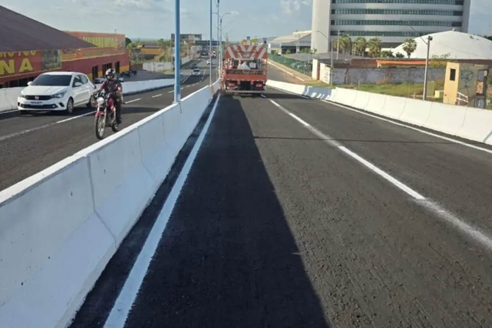 Entre as intervenções executadas na etapa de ontem (28), as equipes atuaram na aplicação de massa asfáltica ao longo da extensão do viaduto, implantação de sinalização horizontal e melhorias nas barreiras de contenção.