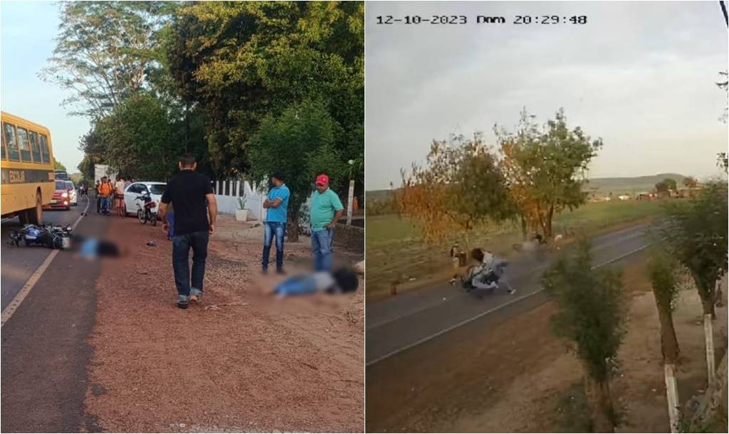 Vídeo registrou o momento em que as duas motos colidem em rodovia na saída do municípioDuas pessoas morreram em um acidente envolvendo duas motocicletas na manhã desta segunda-feira (11/12), por volta das 6h30, no município de União. Um vídeo registrou o momento em que as duas motos colidem frontalmente em uma rodovia na saída do município. As vítimas foram identificadas como Francisco da Conceição e Hernandes. A esposa de Hernandes estava em uma das motocicletas e seu estado de saúde atual é grave.