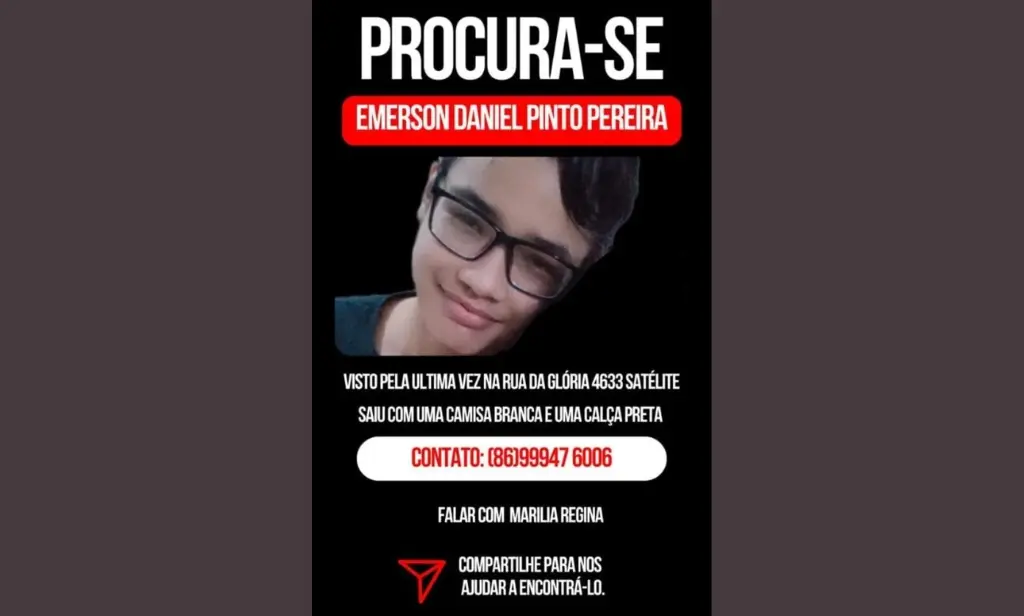 Preocupados com o paradeiro do jovem, os familiares já registraram um boletim de ocorrência. Qualquer informação que possa ajudar na localização de Emerson deve ser repassada pelo telefone (86) 99947-6006.