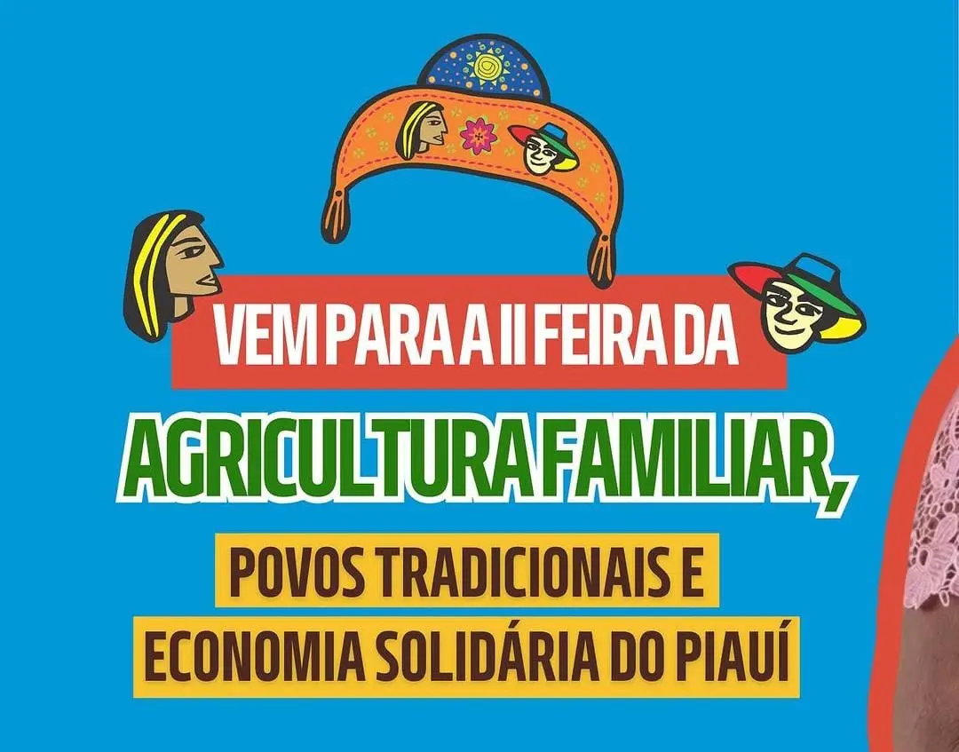 Evento celebra cultura popular, produção local e o protagonismo dos povos tradicionaisA Feira da Agricultura Familiar, Povos Tradicionais e Economia Solidária do Piauí será realizada entre os dias 17 e 19 de outubro, reunindo produtores, artesãos, comunidades tradicionais e empreendedores locais em uma grande celebração da identidade cultural e da economia sustentável do estado.