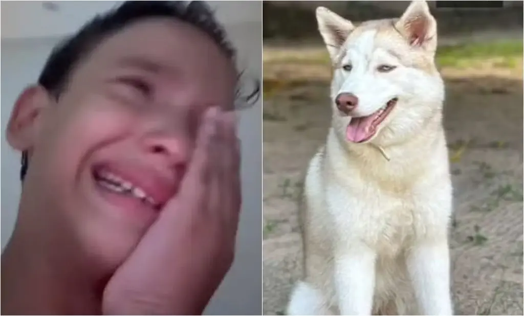 “Se acharem uma husky siberiana de olho azul, branca, com a pele marronzinha é ela! São dois caras que roubaram ela, eu vou lá no portão para mostrar a foto”, disse o garoto.