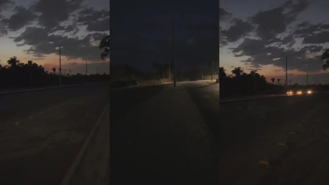 Nas imagens é possível ver a via totalmente sem iluminação e o narrador diz: “É uma via importante, turística da nossa zona Sul, principalmente para a grande região do Parque Sul. Então, nós queremos aqui pedir à Prefeitura de Teresina, através do prefeito Doutor Pessoa”.