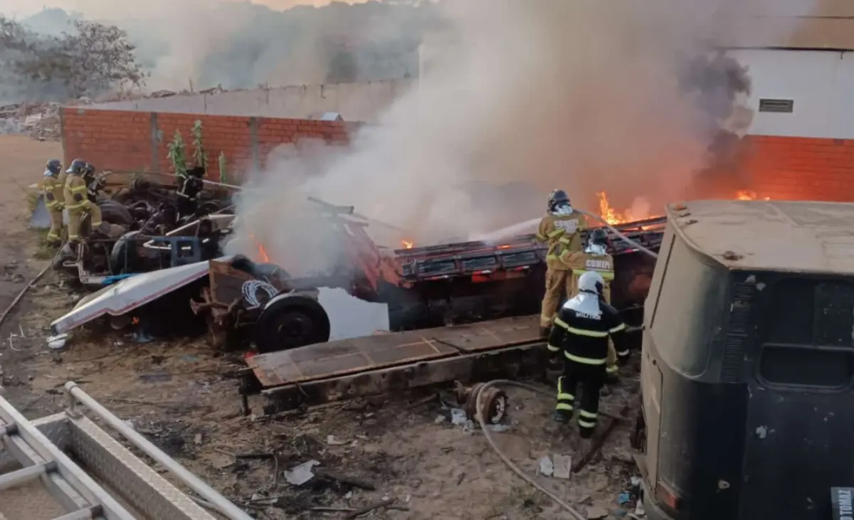 Incêndio atinge terreno baldio e sucata de veículos usada como lixão em Teresina