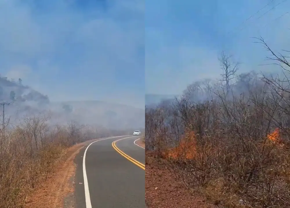Moradores relataram que o fogo estava chegando perto das propriedades ruraisUm incêndio de grandes proporções foi registrado na tarde de sábado (04/10), na Serra do Batista, região situada na estrada que liga os municípios de Valença do Piauí e Pimenteiras. O fogo avançou de forma rápida pela vegetação seca, produzindo uma cortina de fumaça densa que pôde ser avistada a quilômetros de distância.