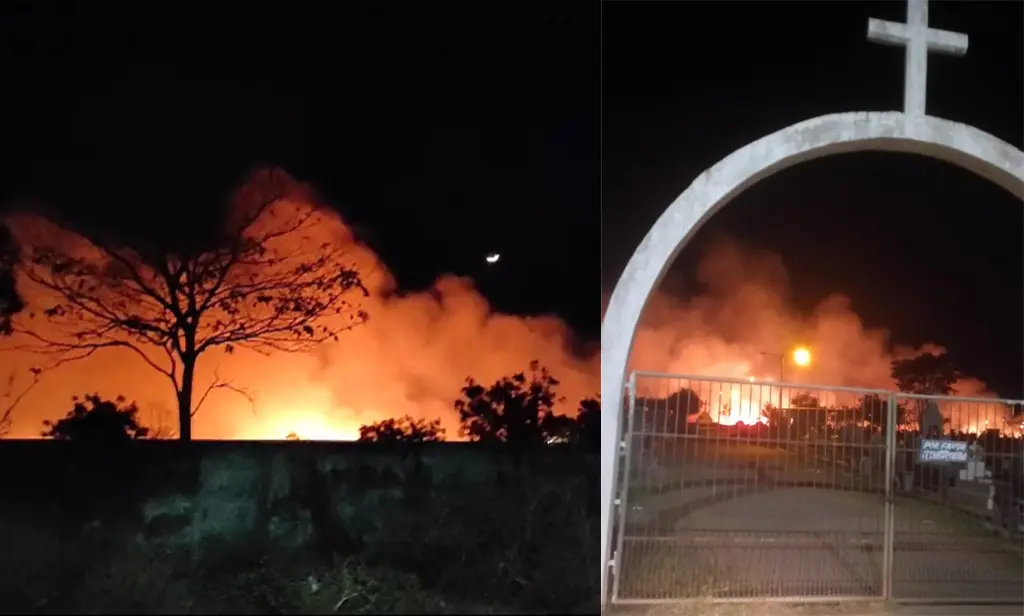 Não há informações sobre as causas do incêndio. As chamas foram controladas por brigadistasUm incêndio de grandes proporções, registrado na noite dessa segunda-feira (21/08), atingiu um cemitério no bairro Cidade Nova, em Campo Maior, no Piauí.
