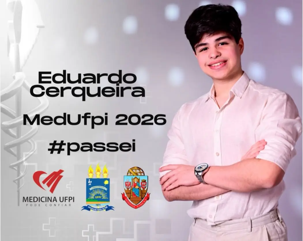 O estudante Eduardo Cleto Cerqueira, de 18 anos, conquistou o primeiro lugar no curso de Medicina da Universidade Federal do Piauí (UFPI) após alcançar média de 849,77 pontos no processo seletivo. Além da aprovação no estado, o jovem também garantiu o segundo lugar no mesmo curso na Universidade de São Paulo (USP), uma das instituições mais disputadas do país.