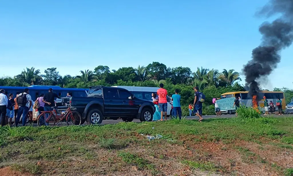 A interdição foi ocasionada por uma manifestação de populares em protesto ao aumento da passagem do transporte coletivo intermunicipal. Cerca de 15 manifestantes bloquearam uma das faixas da rodovia, colocando fogo em pneus e troncos de madeira, impedindo a passagem dos veículos.