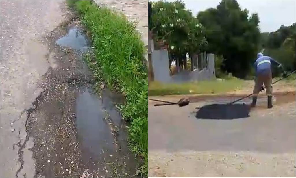 Morador denuncia que equipe de asfaltamento se recusa a tampar buraco em Teresina