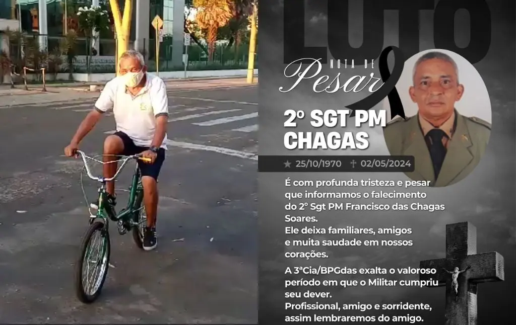 “É com profunda tristeza e pesar que informações o falecimento do 2º Sgt PM Francisco das Chagas Soares.