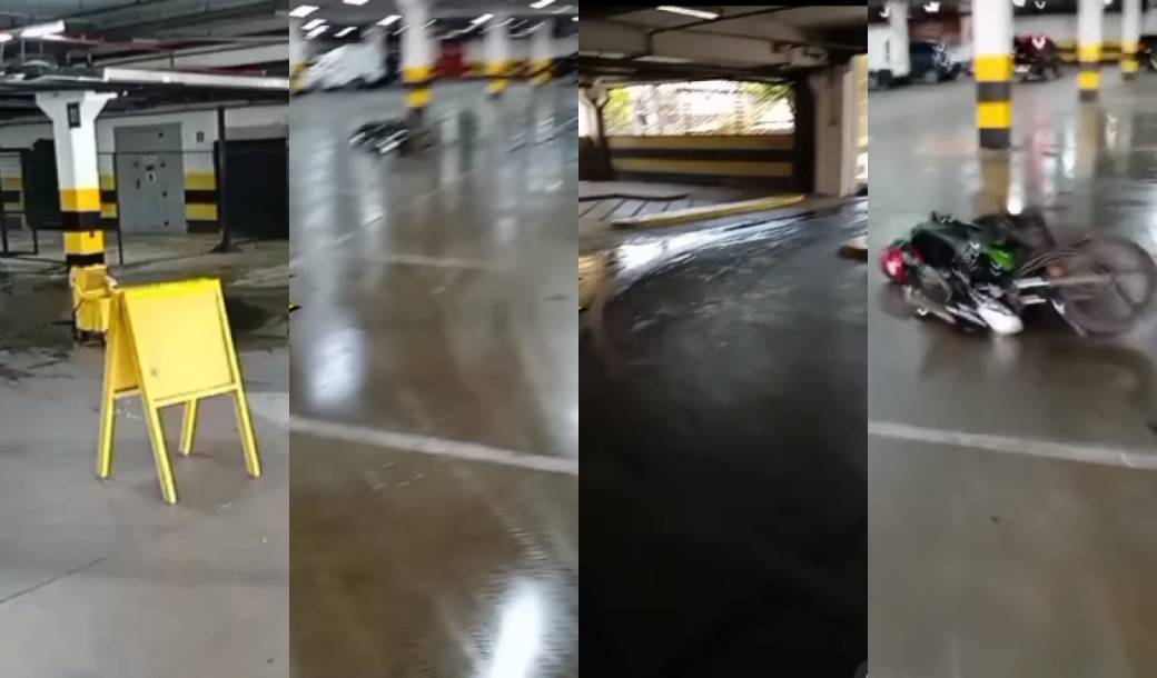 Conforme o motoqueiro, a área estava sendo limpa e não estava sinalizada. "Deixaram o piso molhado aqui sem sinalização, aí a gente entra e cai aqui, dentro do Carvalho da Barão", disse.