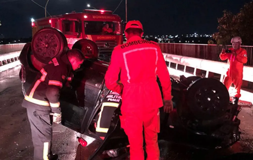 Ainda conforme os bombeiros, o motorista bateu na coluna da ponte e, devido o impacto, capotou o carro. A vítima ficou presa dentro do automóvel e por usar o cinto, evitou lesões mais graves.