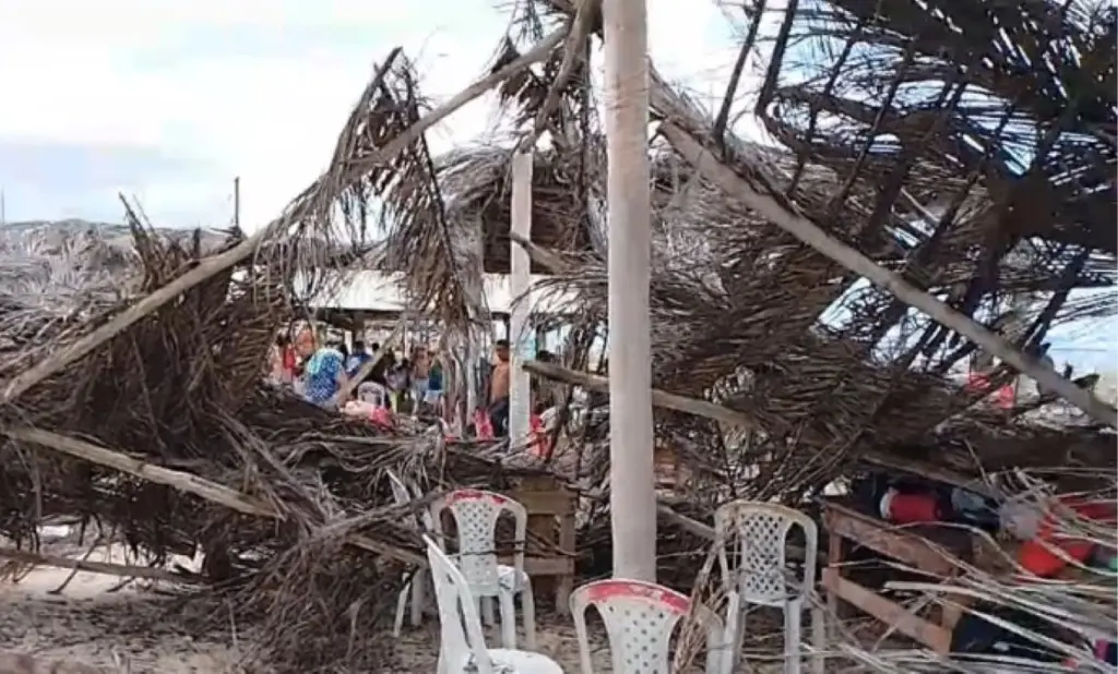 Conforme testemunhas, o desabamento da tenda de palha causou apenas danos aos equipamentos do estabelecimento que fica à beira da praia. A área do acidente foi isolada e deve passar por reparos.