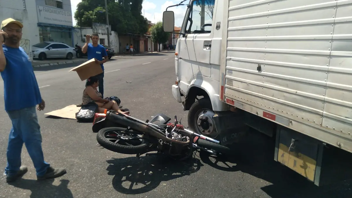 Mulher fica ferida após colisão de caminhão e moto na zona Norte de Teresina