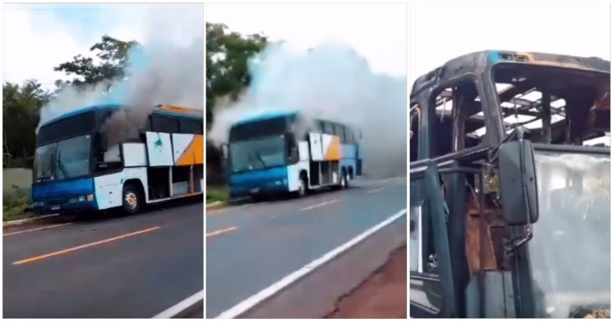 Ônibus pega fogo enquanto trafegada na cidade de Sigefredo Pacheco