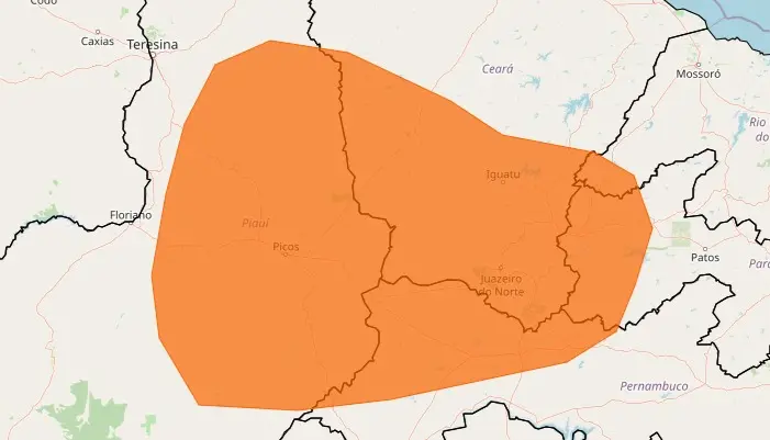 O alerta é válido para as regiões Sudeste Piauiense, Centro-Norte Piauiense e Sudoeste Piauiense. Serão atingidas cidades como Alto Longá, são Miguel do Tapuio, Castelo do Piauí, Elesbão Veloso, Pimenteiras, Valença do Piauí, Inhuma, Pio IX, Fronteiras, Picos, Oeiras, Jaicós, Itainópolis, Simões Simplício Mendes, São João do Piauí e Paulistana.