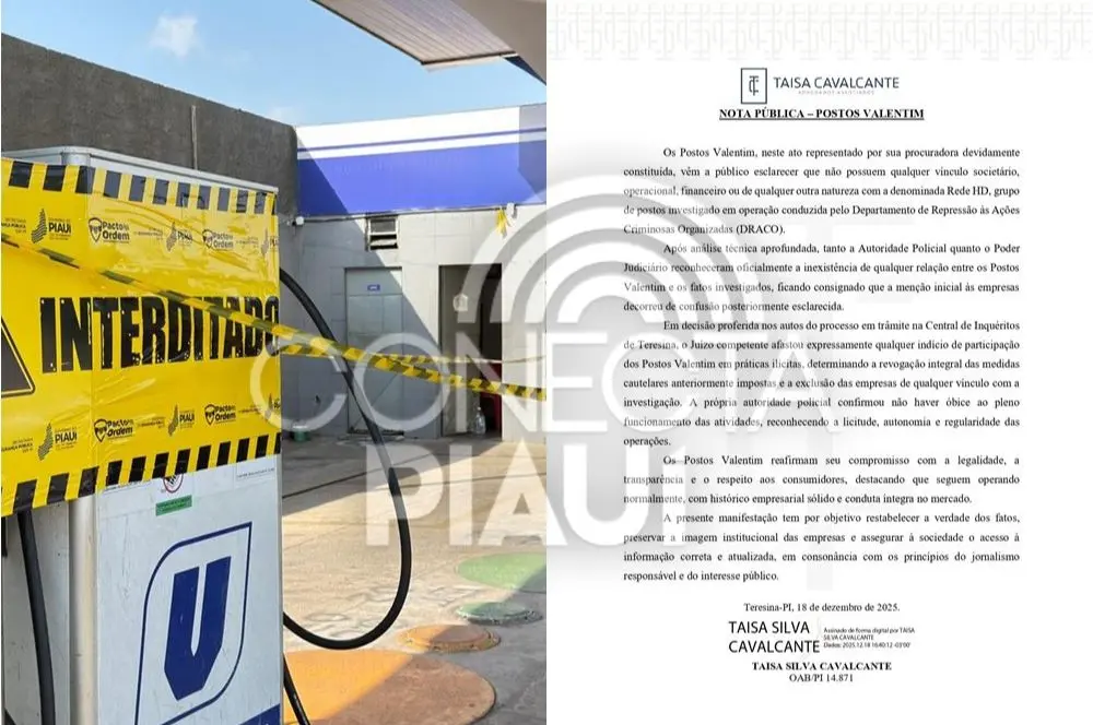 A menção inicial, segundo o comunicado, teria ocorrido por confusão posteriormente esclarecidaApós a divulgação de investigações conduzidas pela Polícia Civil do Piauí que apontam a atuação da facção criminosa Primeiro Comando da Capital (PCC) em um esquema bilionário de lavagem de dinheiro e fraudes no mercado de combustíveis do estado, a rede Postos Valentim emitiu uma nota pública esclarecendo que não possui qualquer relação com os fatos apurados.