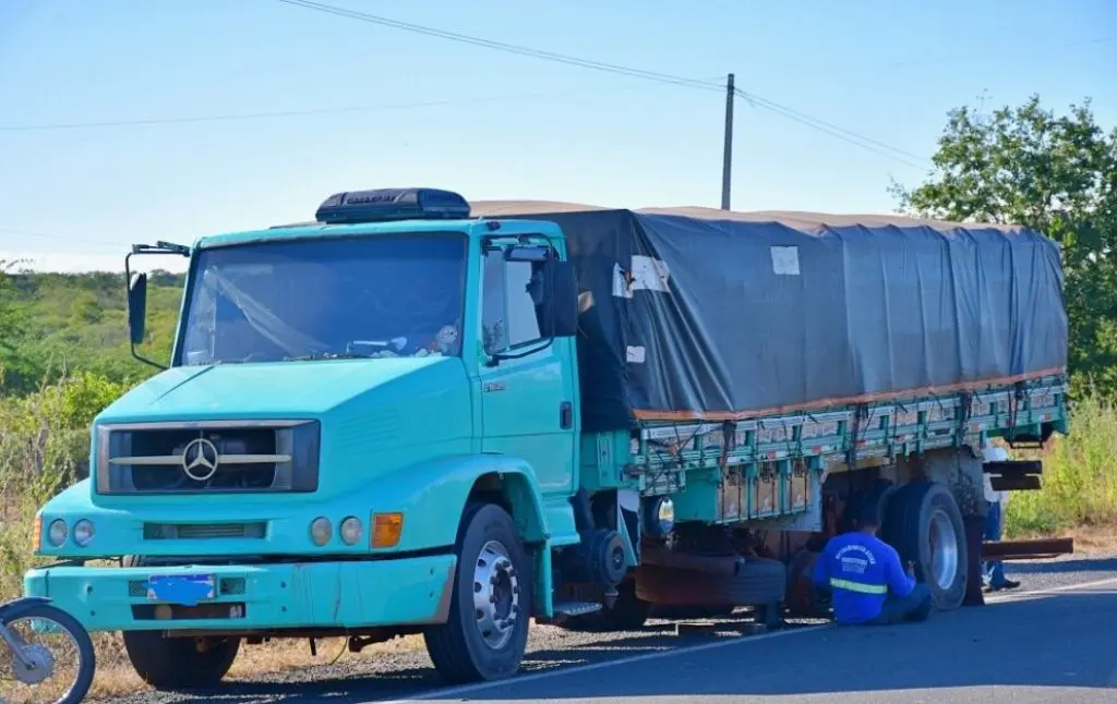 Roda de caminhão se desprende e atinge ambulância em rodovia no interior do Piauí