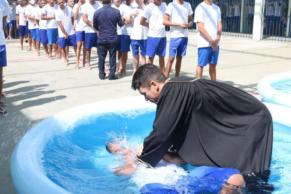 Secretaria de Justiça realiza batismo de 53 detentos em penitenciária de Teresina