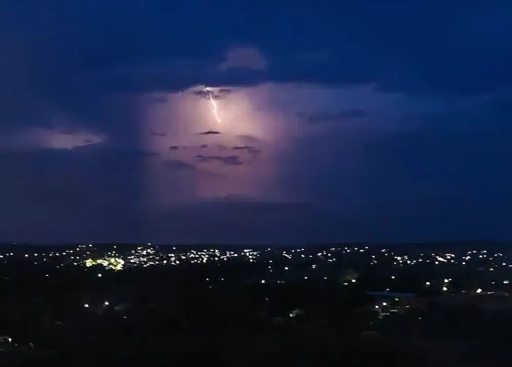 A Defesa Civil reforça que, em casos de tempestades com raios, a recomendação é buscar abrigo seguro, evitar áreas abertas e não se aproximar de árvores ou estruturas metálicas.
