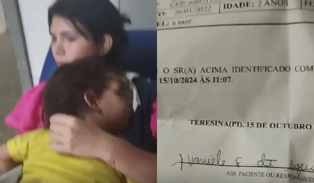 Nas imagens, a criança aparece deitada no colo da mãe, dormindo, enquanto a tia grava o vídeo e tenta buscar informações sobre o atendimento. A mulher relata que chegou ao hospital por volta das 11h da manhã em busca de atendimento com um médico otorrinolaringologista, mas até às 14h52 o atendimento ainda não havia sido realizado.