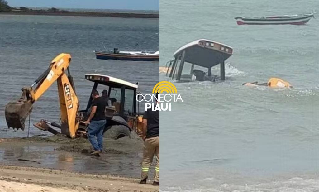 Imagens compartilhadas nas redes sociais mostram o veículo na praia, em meio a maré altaUm trator a serviço da Prefeitura de Cajueiro da Praia, atolou na manhã desta quinta-feira (12/12), enquanto realizava trabalhos em uma praia no município. Imagens compartilhadas nas redes sociais mostram o veículo parcialmente submerso, após a maré subir rapidamente.