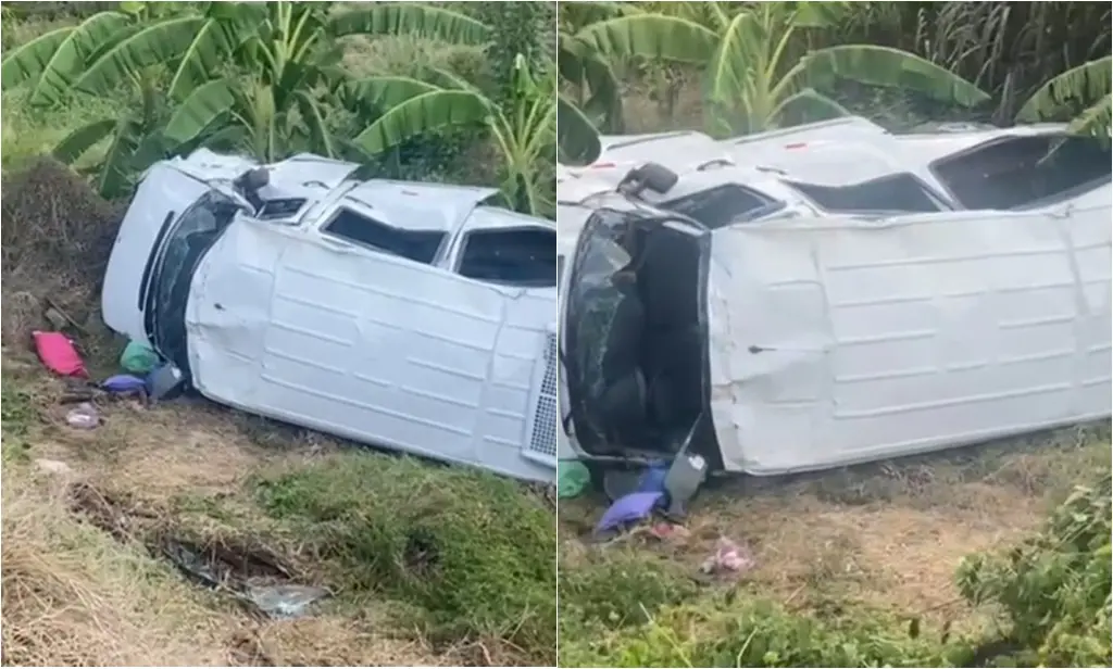 Van capota na 'Curva do Gato' e deixa passageiros feridos em rodovia no Piauí