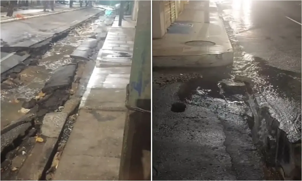 Asfalto que fica próximo ao meio fio da via ficou completamente destruído pelas chuvasA Avenida Principal do bairro Saci, na zona Sul de Teresina, cedeu após as intensas chuvas da noite desta segunda-feira (09/12) e madrugada de terça-feira (10/12). Moradores da região registraram o prejuízo causada pelas águas e compartilharam os registros nas redes sociais. O asfalto que fica próximo ao meio fio da via ficou completamente destruído. Uma obra de reparos feita pela empresa Águas de Teresina no local contribuiu para a formação da cratera.