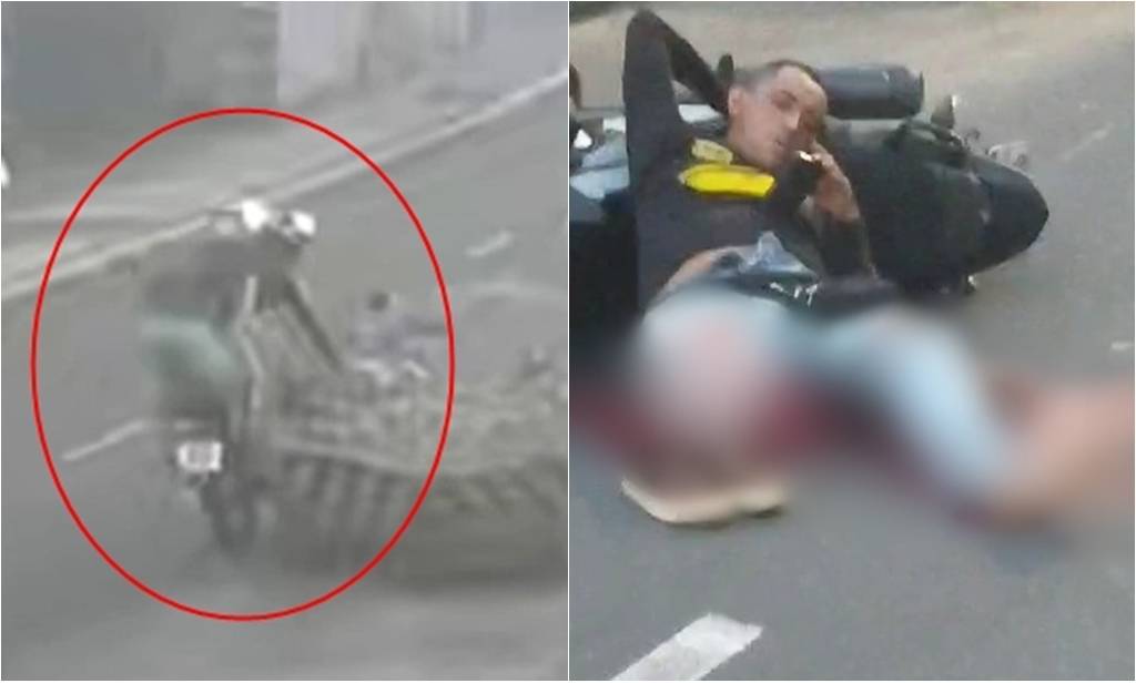 Piloto teve fratura exposta e perna direita precisou ser amputada após o acidenteUm piloto por aplicativo colidiu contra um papa-entulho que estava localizado na rua Jornalista Dondon, no bairro Planalto Ininga, na zona Leste de Teresina. Câmeras de segurança flagraram o momento do acidente, que aconteceu na manhã desta terça-feira (16/04). O motociclista teve a perna amputada devido o acidente.