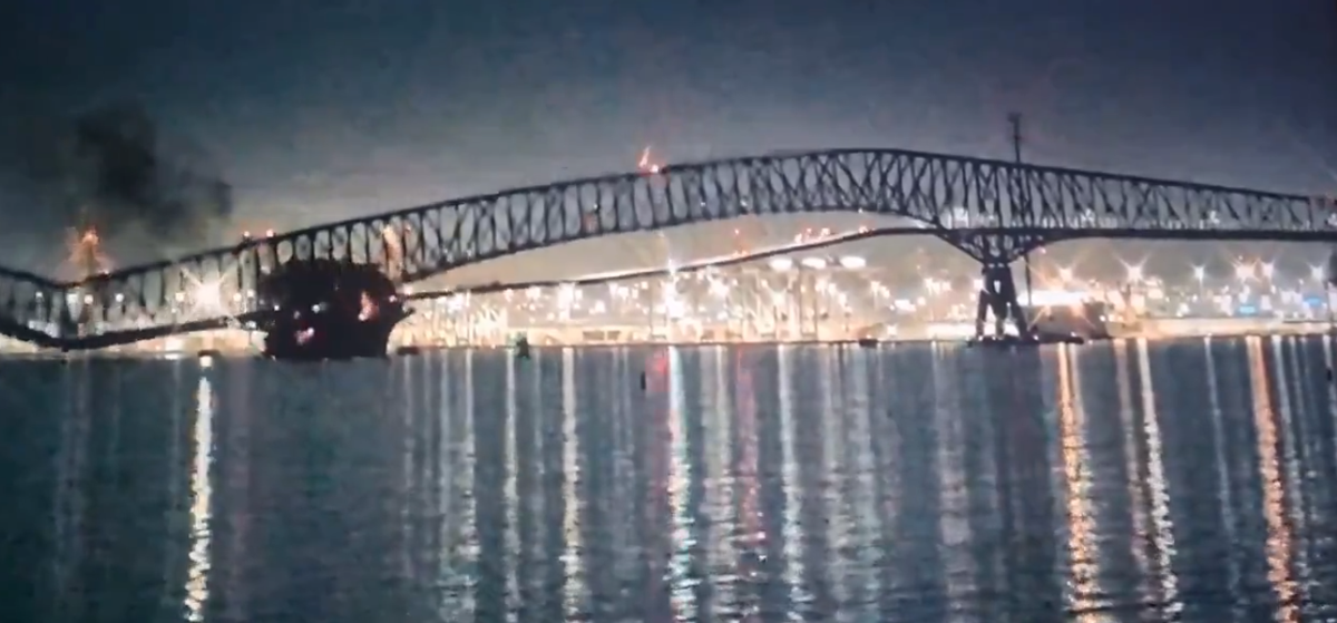 Ponte desaba após colisão de navio cargueiro; resgate buscam sobreviventes