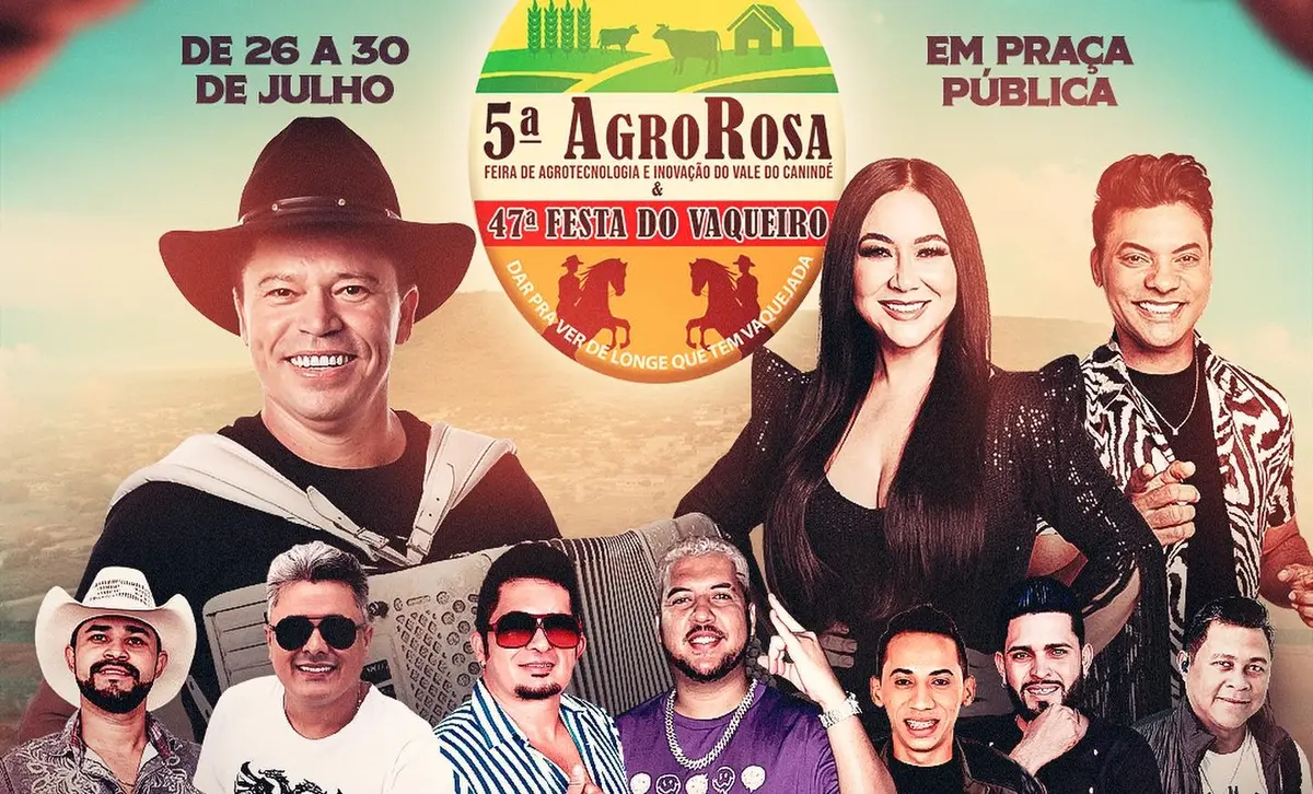 Os eventos em questão são a 5ª AgroRosa e o 47ª Festa do Vaqueiro, que serão realizados entre os dias 26 a 30 de julho de 2023.