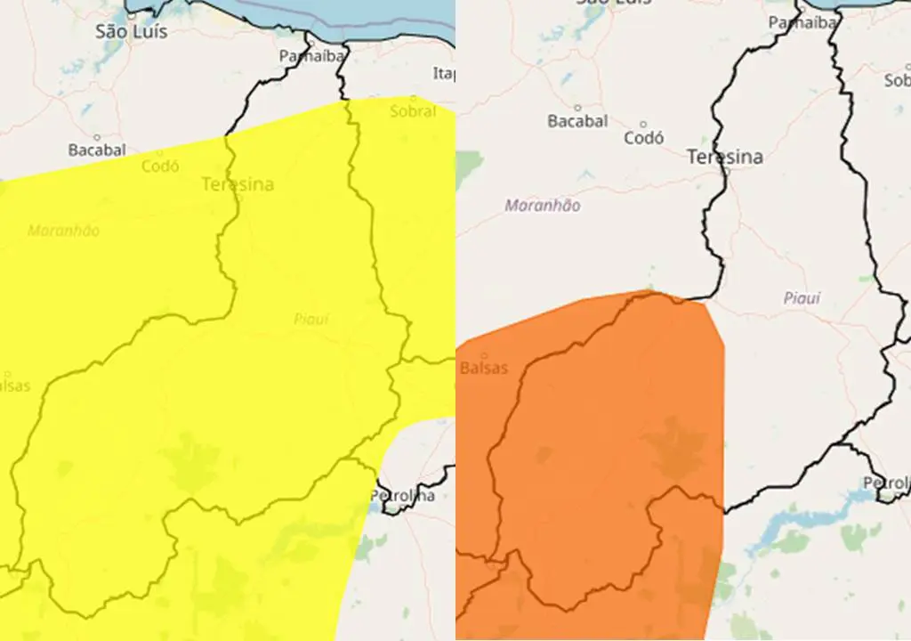 O alerta é válido até as 19 horas desta sexta. Conforme o Inmet, a umidade relativa do ar deve variar entre 30% e 20% nas regiões Centro-Norte Piauiense, Sudoeste Piauiense e Norte Piauiense. No Sudoeste, a umidade relativa do ar também está variando entre 20% e 12%.