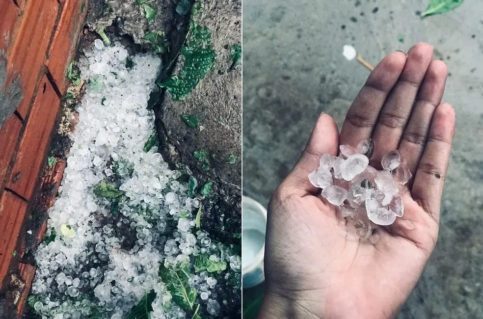 "Estávamos em atendimento normal, quando de repente começamos a ouvir um barulho de pedras caindo no telhado do posto, logo depois começaram a falar 'está chovendo pedra de gelo'. Saímos dos consultórios e corremos para recepção do posto, ficamos todos lá observando aquele fenômeno inédito para nós. Chegamos a ficar com medo, a chuva de granizo estava forte e com muito vento. Depois de um tempinho ficamos mais calmos e conseguimos apreciar aquele fenômeno", relatou a equipe da UBS em nota.