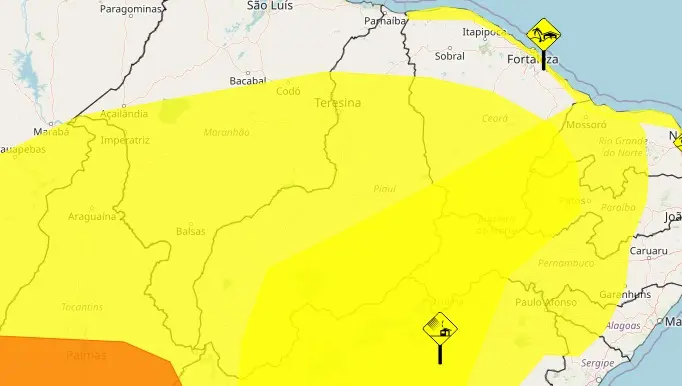 Já o alerta amarelo para Ventos Costeiros, válido até as 10h00min desta terça (12), refere-se à intensificação dos ventos nas regiões litorâneas, movimentando dunas de areia sobre construções na orla. O alerta é referente apenas ao Norte Piauiense.