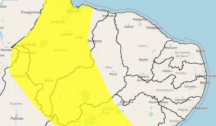 Piauí tem alerta de perigo potencial de chuvas intensas neste final de semana