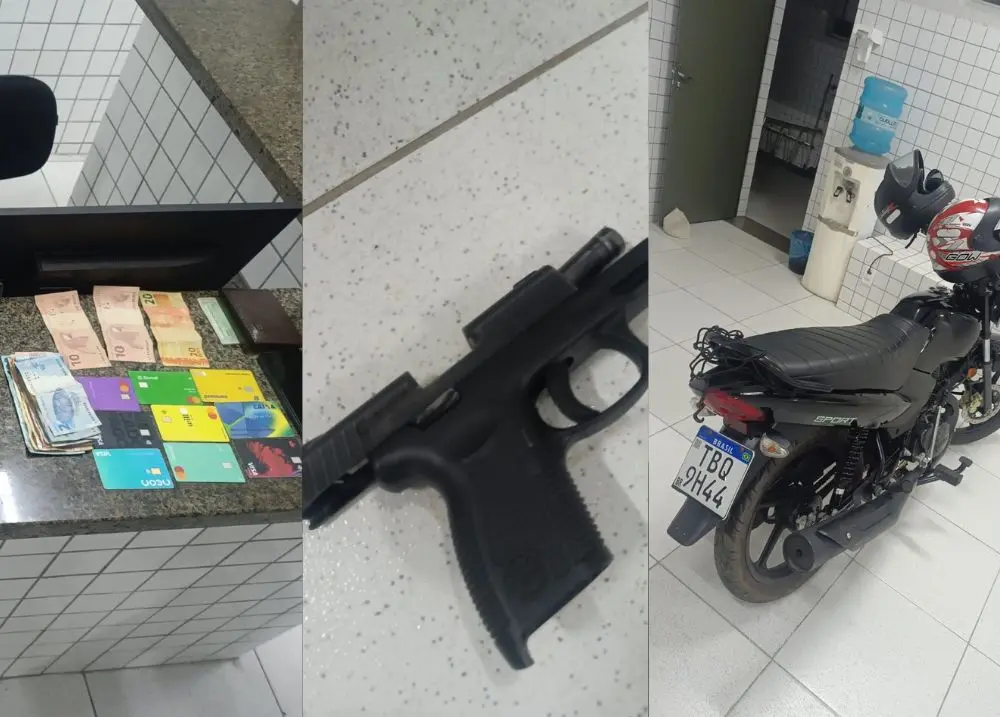 Suspeitos tentaram fugir, mas foram detidos com arma, drogas e dinheiro na AtalaiaUma ação da Polícia Militar resultou na prisão de dois homens na região da Atalaia, em Luís Correia, na tarde de sábado (06). A equipe da viatura Maria da Penha fazia patrulhamento quando identificou uma motocicleta em alta velocidade saindo do bairro Coqueiro em direção ao Centro.