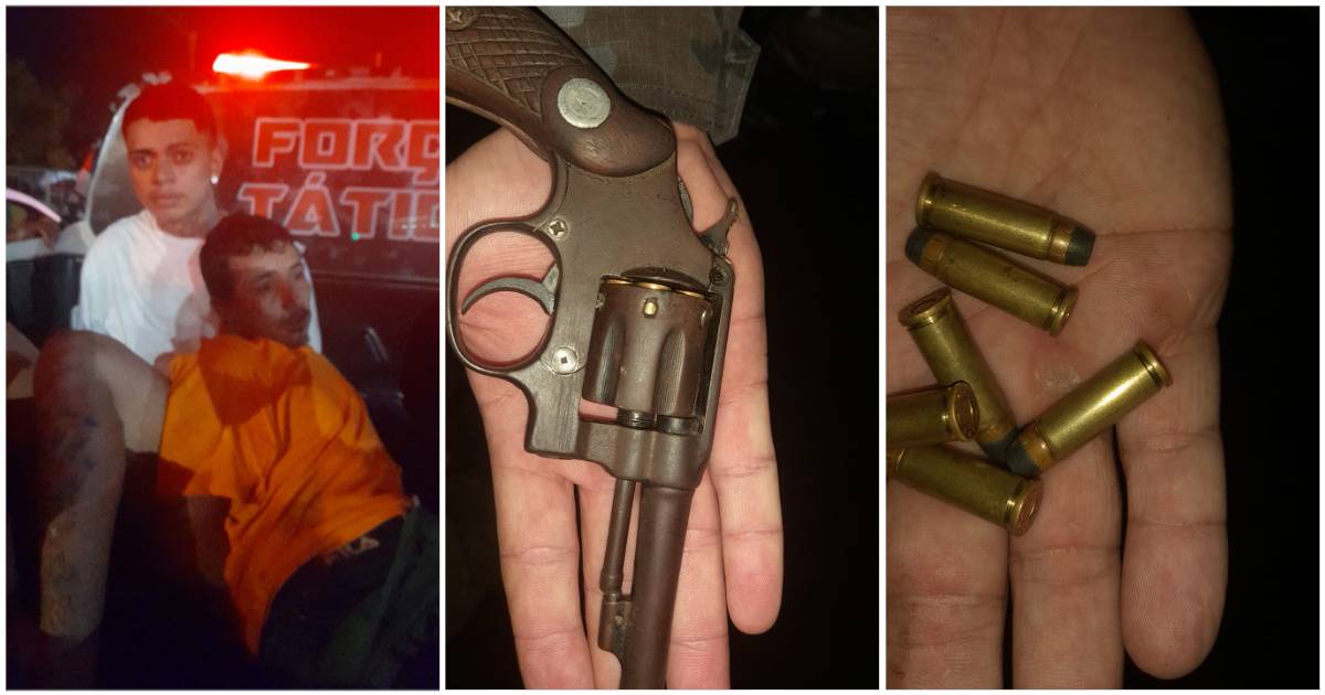 Com a dupla, a equipe da Força Tática do 27° Batalhão da Polícia Militar encontrou uma arma de fogo calibre .32 com 6 munições intactas, que estava em posse de Francisco de Assis Araújo da Silva.