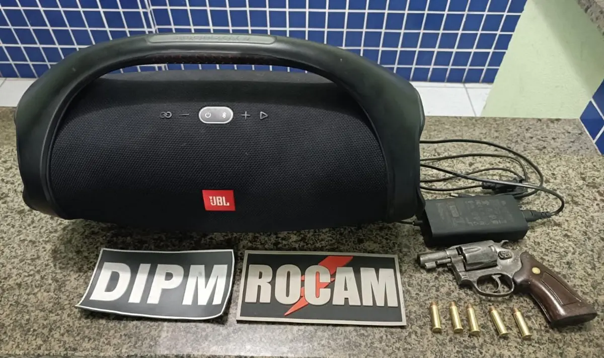 Inicialmente, o suspeito negou as acusações, mas em seguida confessou o roubo. Ele indicou o local onde estava escondida uma caixa de som bluetooth JBL Boombox, que havia sido roubada do estabelecimento comercial, e a arma de fogo utilizada no crime.