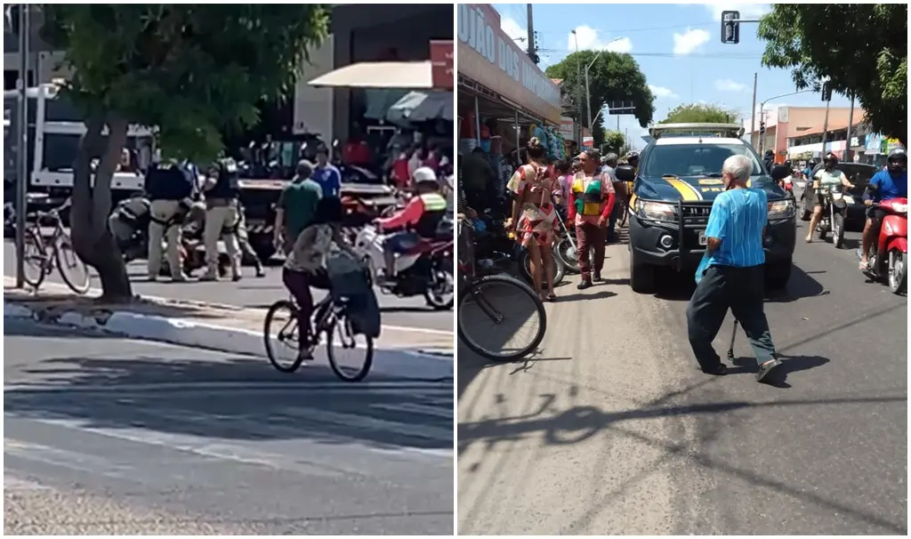 No vídeo feito por populares é possível ver o momento em que os policiais mobilizam o homem.A Polícia Rodoviária Federal (PRF-PI) prendeu nesta quarta-feira (20/09), um mototaxista que estava pilotando uma motocicleta embriagado nas ruas de Parnaíba, litoral piauiense. O homem começou a causar tumulto no trânsito após não aceitar que os policiais levassem seu transporte.