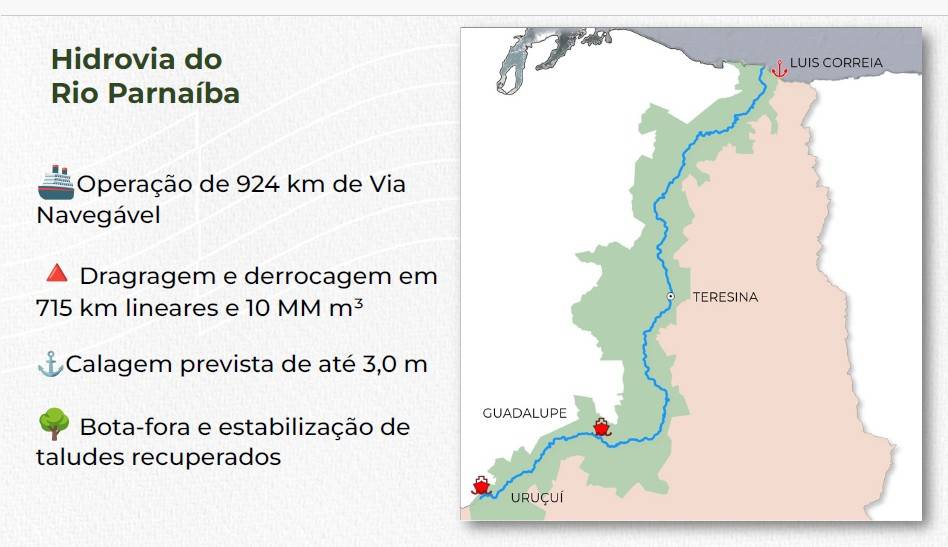 Governo do Piauí foi autorizado pela União a assumir a gestão da extensão do rio, que é federalAté o segundo semestre de 2026 devem começar as obras para a ampliação da capacidade da Hidrovia do Rio Parnaíba, importante modal que será usado para o transporte de mercadorias entre o sul e o norte do Piauí, facilitando a exportação de bens e produtos pelo Porto Piauí.