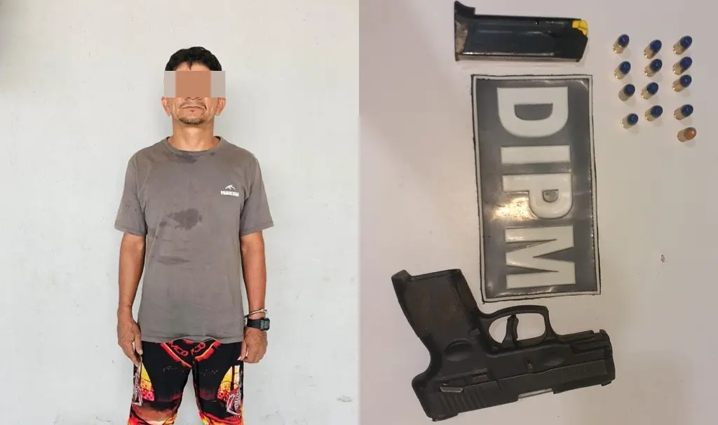 Uma pistola 9mm foi apreendida, além de um carregador e 13 munições intactas. O homem foi encaminhado para a central de flagrantes da cidade. ‘Paulinho Precheca’ já tem passagens na polícia por porte ilegal de arma de fogo e tráfico de drogas.