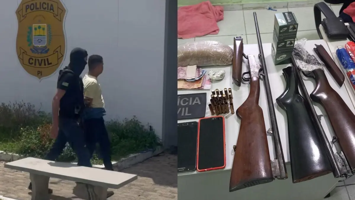 Com o suspeito, foram encontrados aproximadamente 1kg de crack, armas de fogo e outras drogasA Polícia Civil do Piauí deu cumprimento nesta sexta-feira (16/02), a um mandado de busca e apreensão na casa de um suspeito identificado pelas iniciais K. C. N. O. L., de 26 anos, no Bairro Pindorama, em Parnaíba. Ao chegar na residência o suspeito estava saindo de moto onde, ao visualizar os policiais o alvo tentou fugir, porém uma das viaturas conseguiu interceptá-lo. O homem então se chocou contra uma das viaturas, caiu e foi capturado.