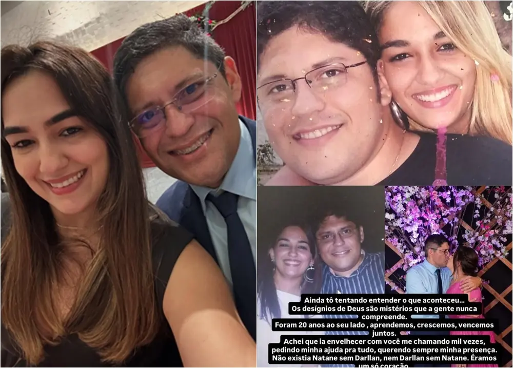 No texto, ela relembrou os 20 anos de convivência e companheirismo ao lado do marido. “Foram 20 anos ao seu lado, aprendemos, crescemos, vencemos juntos. Achei que ia envelhecer com você me chamando mil vezes, pedindo minha ajuda pra tudo, querendo sempre minha presença. Não existia Natane sem Darllan, nem Darllan sem Natane. Éramos um só coração”, escreveu.