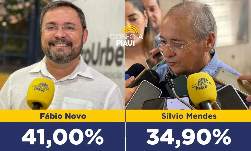 Fábio Novo com apoio do presidente Lula e do governador Rafael Fonteles aparece na liderança com, 52% seguido de Sílvio Mendes com apoio do ex-presidente Bolsonaro e do senador Ciro Nogueira 32,30%, Nenhum / Branco / Nulo (espontânea) 8,40%, Não sabe / Não opina (espontânea) 7,30%.