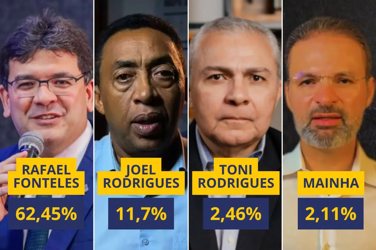 Considerando apenas os votos válidos, o governador alcança 76,59%, contra 14,35% de Joel Rodrigues. Os demais ficam abaixo de 4%.