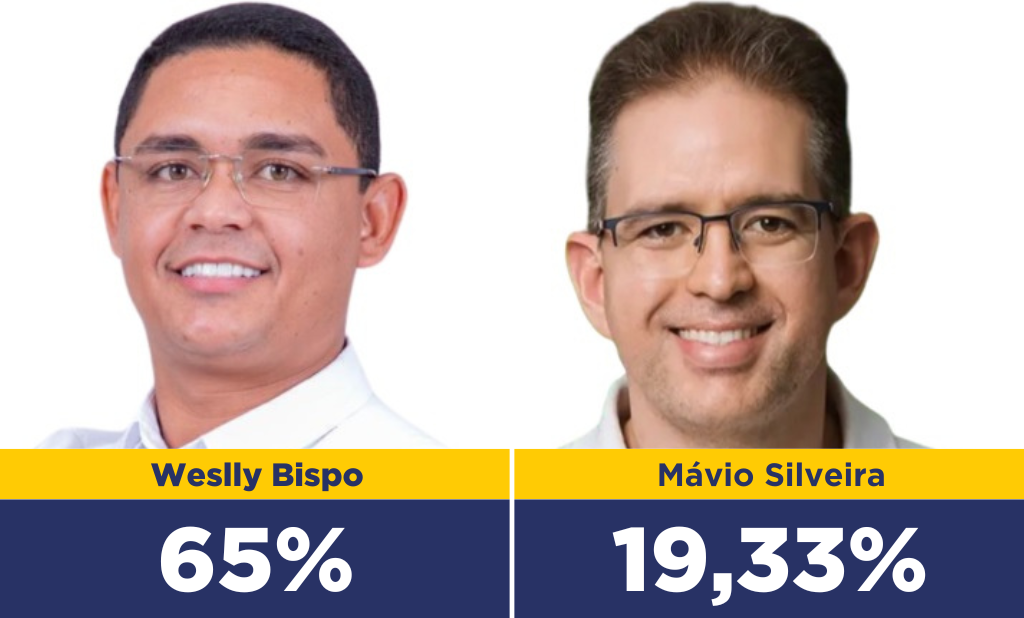 A pesquisa mostra que Weslly está com 65% das intenções de votos no cenário estimulado, enquanto seu adversário, Mávio Silveira (MDB), aparece com 19,33%. Outros 11% não sabe ou não opina, e 4,67% votaria em branco, nulo ou em nenhum dos candidatos citados.