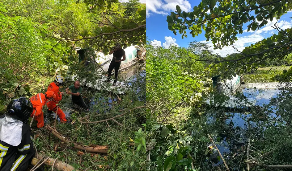 "Chegamos muito rápido no local do acidente, lá encontramos os dois tripulantes fora da aeronave, retirando a bagagem que estava dentro. Realizamos o resgate das duas pessoas, bem como de todos os pertences pessoais. Eles estavam aparentemente bem, sem lesões ou mesmo arranhões e foram transportados pelo Samu ao hospital para avaliação médica mais específica”, explicou Najra Nunes.